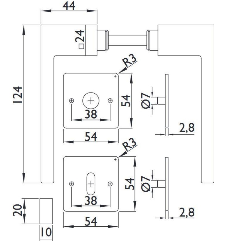 průměr otvoru pro čtyřhran (při přípravě dveří): 22 - 25 mm